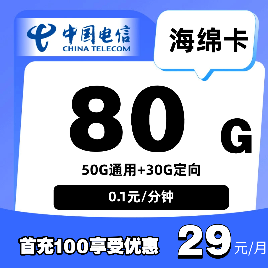 29元80G通用(长期套餐,流量结转)