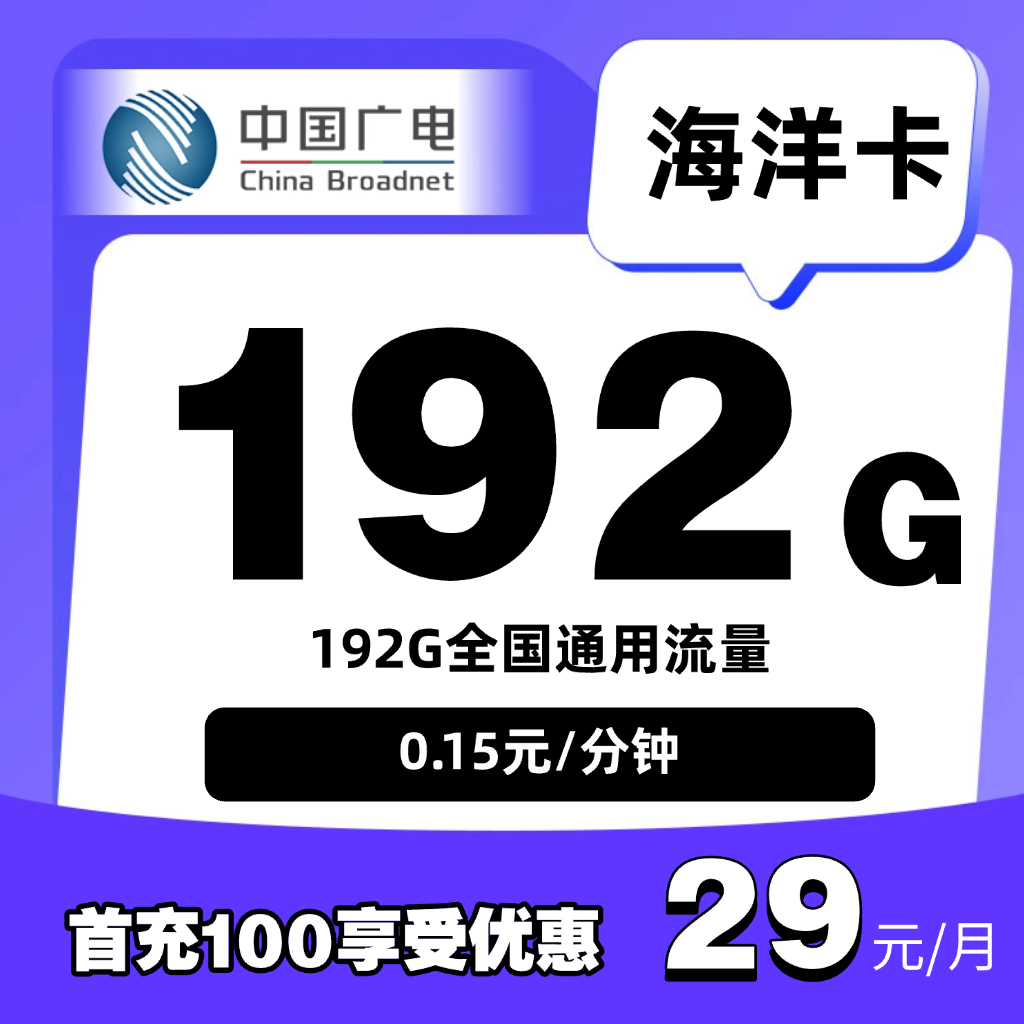 29元192G通用+0G定向+0.15元/分钟