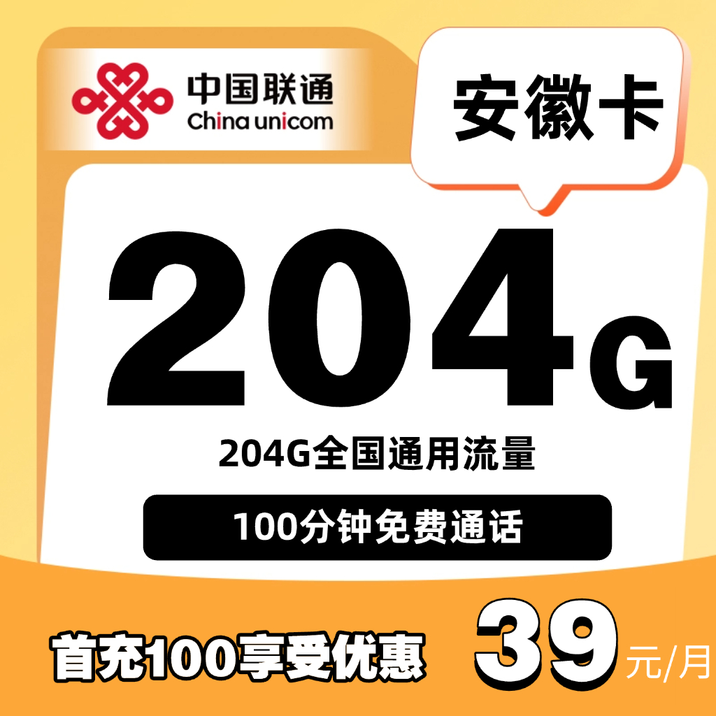 39元包204G通用+100分钟