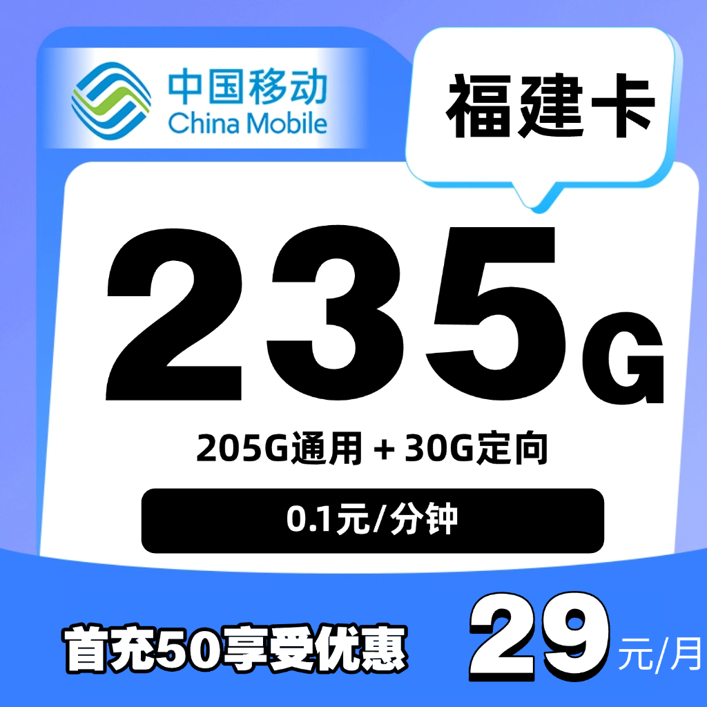 29元50G通用+30G定向+0.1元/分钟