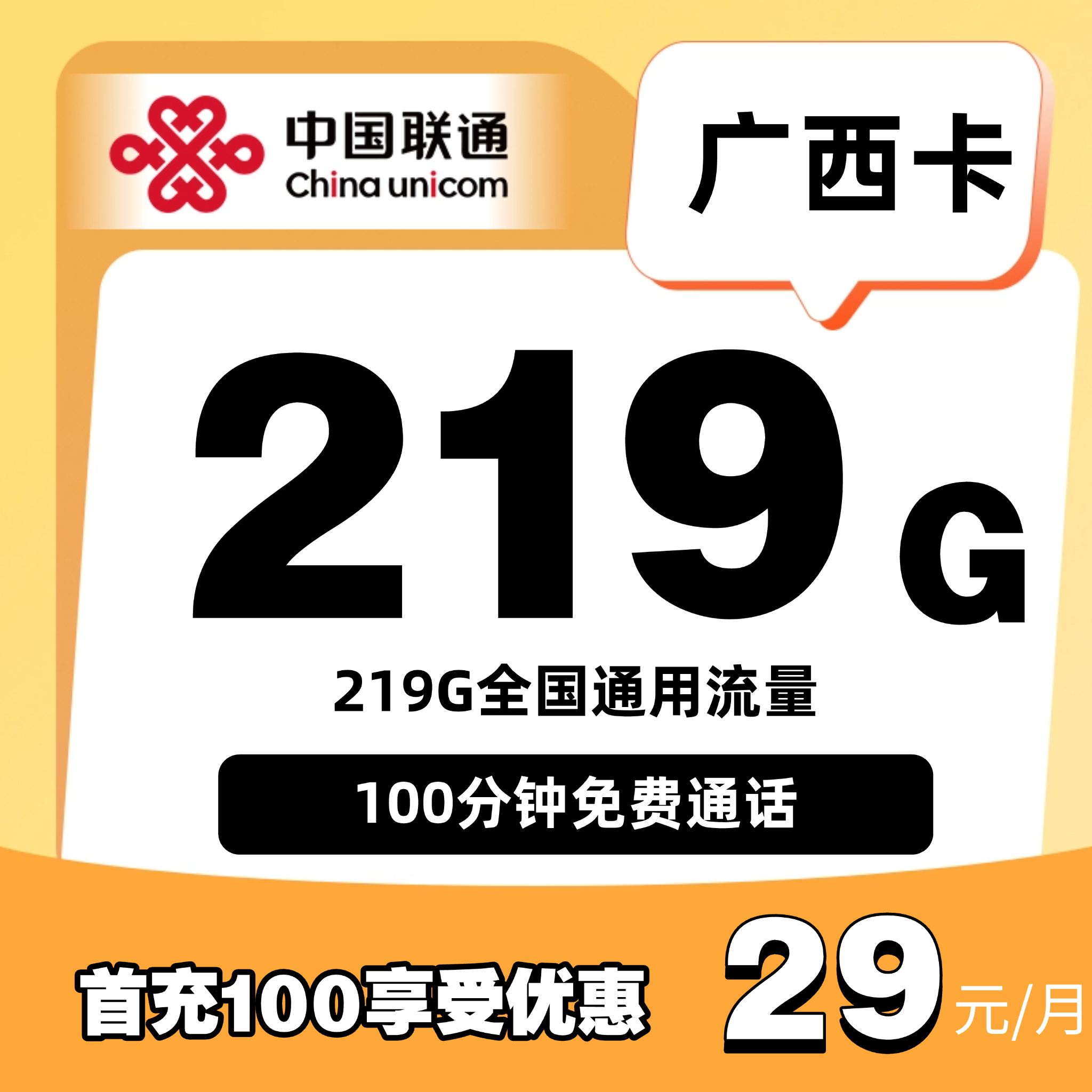 29元包150G通用+100分钟