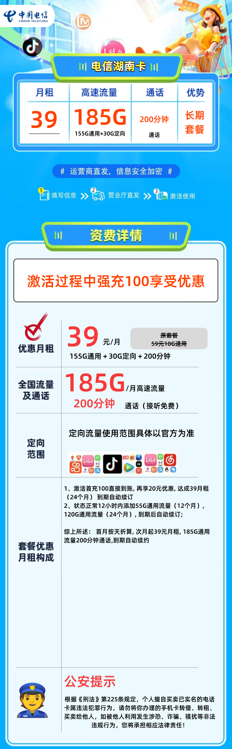 卖点: 仅发湖南 长期套餐